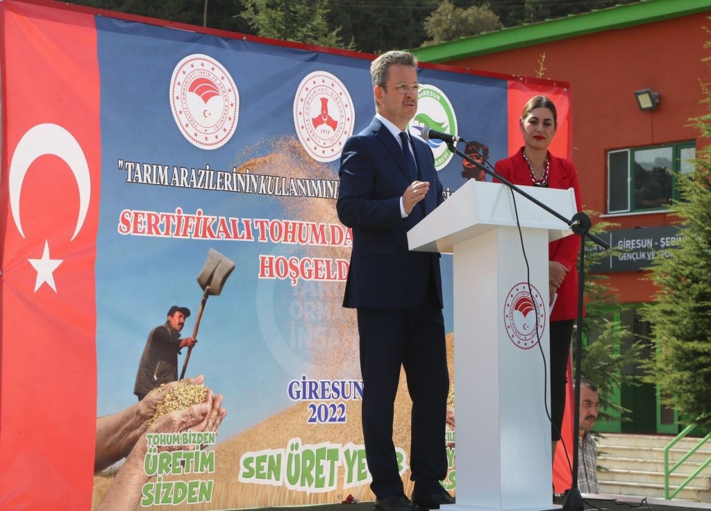 Şebinkarahisar Kaymakamlığı tarafından organize edilen programda; Vali Enver Ünlü, Giresun Milletvekili Cemal Öztürk ve protokol üyelerinin katılımıyla çiftçilerimize sertifikalı tohum dağıtımına start verildi. Tarım ve Orman Bakanlığı %50 hibe destekli, 3 milyon 300 bin TL bütçeli “Arpa Yetiştiriciliğinin Geliştirilmesi” ve “Buğday Yetiştiriciliğinin Geliştirilmesi” projelerimiz ile çiftçilerimize dağıtımı yapılacak sertifikalı tohum miktarları; 136 ton arpa ve 132,4 ton buğday tohumu olmak üzere 268,4 ton’ dur. 13 bin 420 dekar alanda, 671 çiftçi ailesi faydalanmış olacaktır. Yöre iklim ve toprak şartları dikkate alınarak: Ekmeklik buğday çeşidi olarak Bayraktar ve Bezostaya; Makarnalık buğday çeşidi olarak Kızıltan 91 ve arpa çeşidi olarak da Aydan Hanım sertifikalı tohumları tercih edildi. İl Özel İdaresinden %50 hibe destekli, 2 milyon TL bütçeli “Arpa ve Trikale Yetiştiriciliği” projesi ile hayvancılıkla iştigal eden çiftçilerimize dağıtımı yapılacak sertifikalı tohum miktarları; 100 ton Tritikale (Tatlıca 97 çeşidi) ve 59 ton arpadır. Proje ile 8 bin dekar alanda, 400 çiftçi ailesi faydalanmış olacak. Yüksek kesimdeki ilçelerimizde TAKEP Projesine başvuran tüm üreticilerimizin sertifikalı tohum talepleri, Bakanlığımızın “Sen Üret Yeter” mottosu doğrultusunda şartlarda gerekli kolaylıklarda sağlanmak suretiyle karşılanmıştır. Toplamda 21 bin 420 dekar arazi ekilecek olup, iklim şartlarının iyi gitmesi halinde 5 milyon 300 bin TL’lik bu projenin İlimiz tarımsal ekonomisine sağlayacağı çarpan etkilerinin; 58 milyon TL’nin üzerinde katkıya ulaşacağı tahmin edilmektedir.